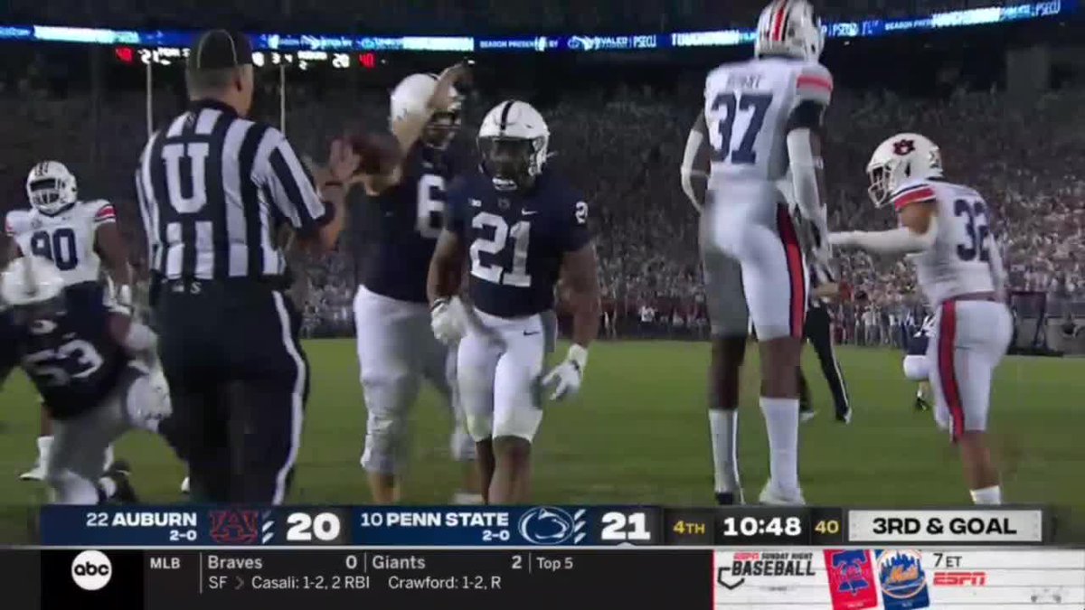 Auburn Tigers at Penn State Nittany Lions. Will be interesting to see what adjustments Auburn makes in 2Q. 1012 Penn State welcomes No.