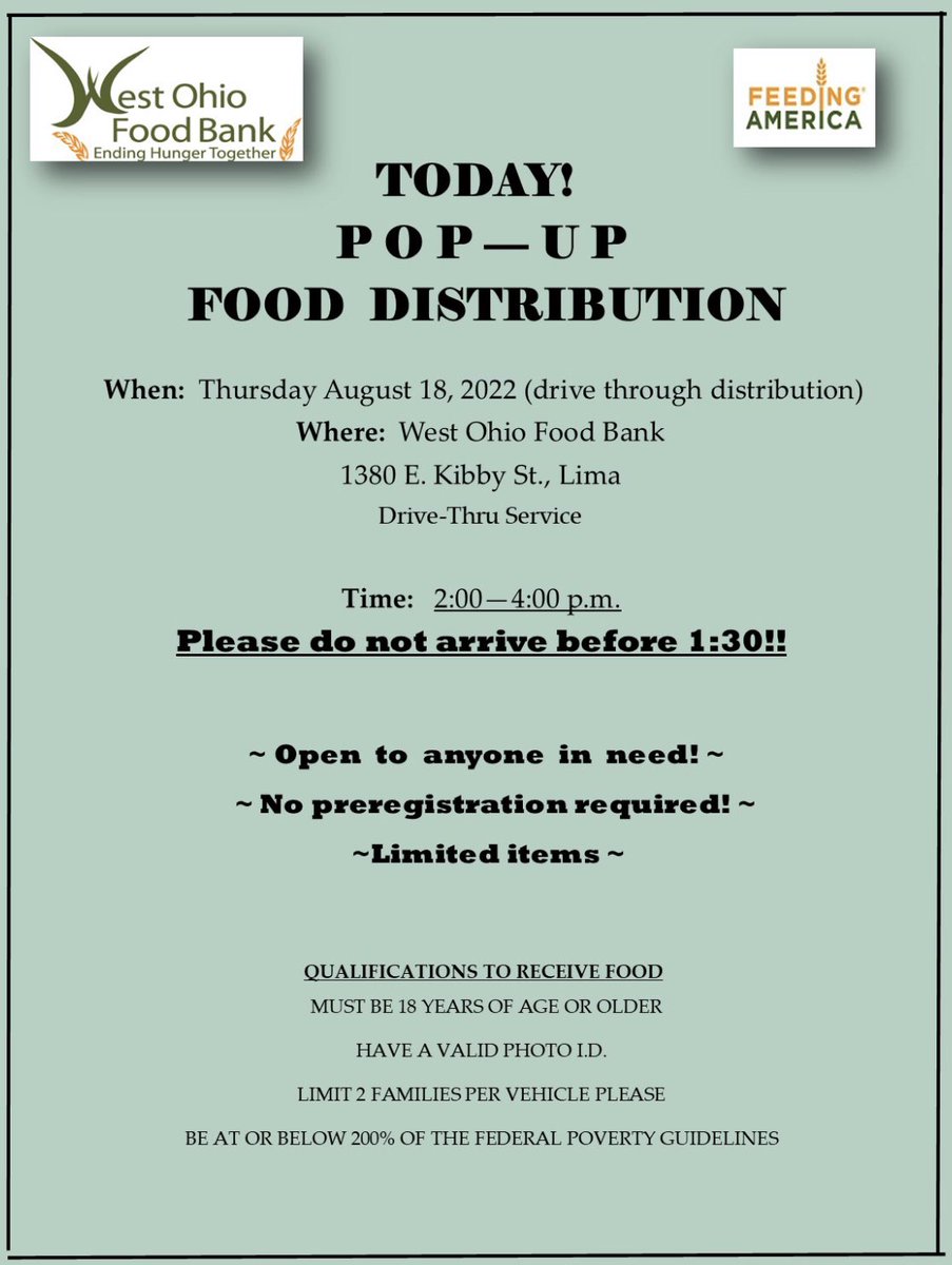 Connecting individuals and families to healthy high-quality. Registration will open 82222 at 10am. West Ohio Food Bank Food Distributions.
